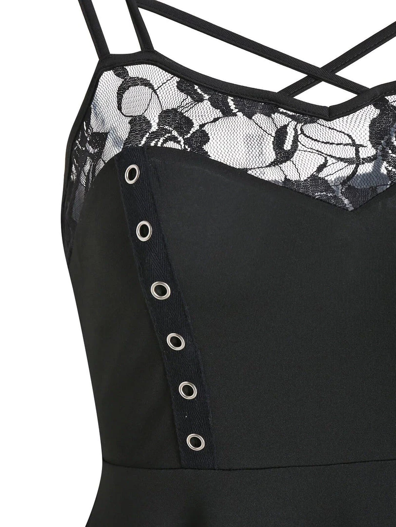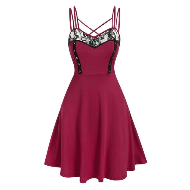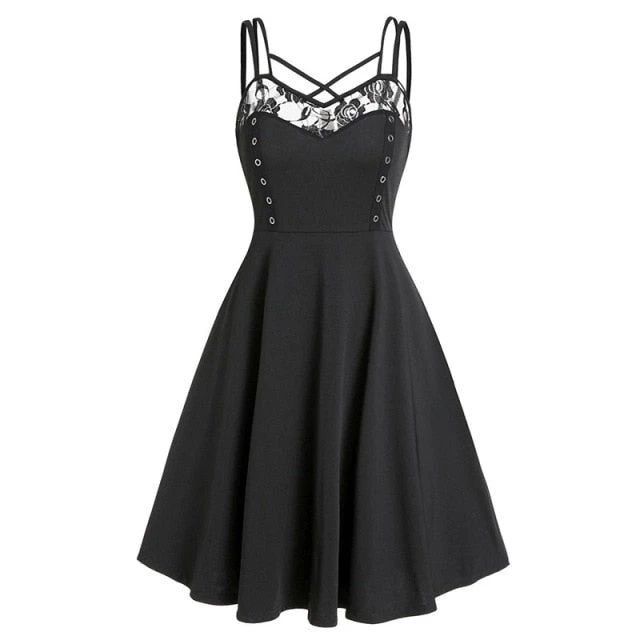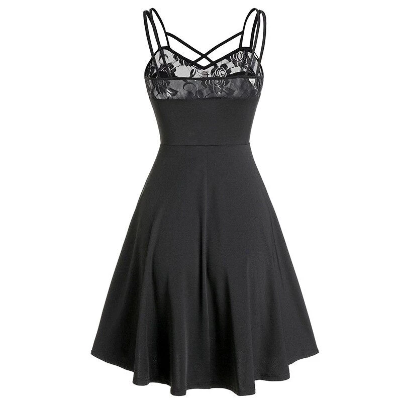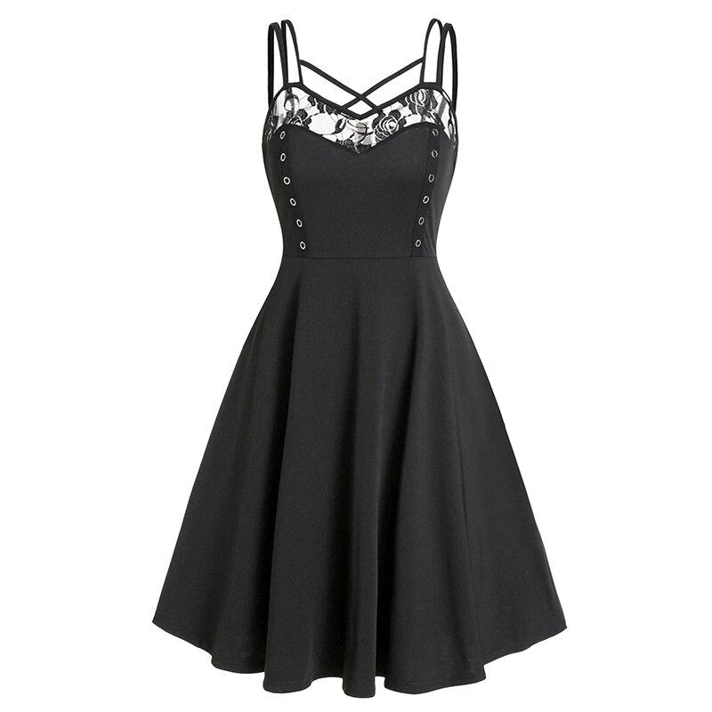 An a-line dress, suitable for any occasion – wear it to a wedding or a funeral, or even on a night out to the goth club! Combine it with some hardcore boots from our collection!