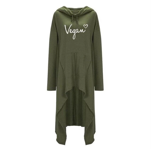 As most of you now, we are a vegan brand which supports eco-friendly practices when making our clothes and accessories. So why not state it to the world to see with a cute hoodie-like dress? Made from a fine cotton-polyester blend for a nice soft feeling on the skin. And it has something most dresses lack – pockets!Â