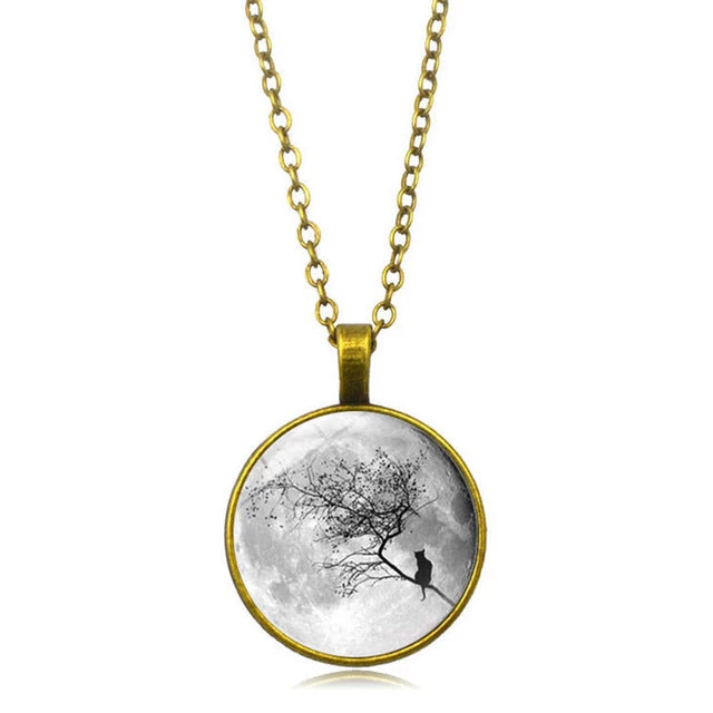 This beautiful gray moon neckpiece is goth-inspired and designed to make a statement. It is made of zinc alloy and glass.