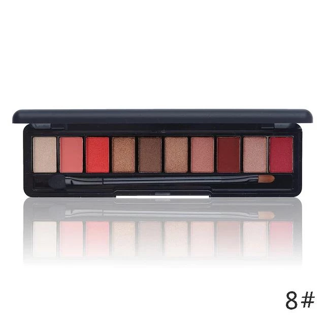 We have combined all the earthly colors mixing matte and shimmer, depending on your preference. Now your smokey eye will be easy and effortless, as this eyeshadow does not smudge and blends within seconds! Every palette contains ten colors which are all waterproof! Â