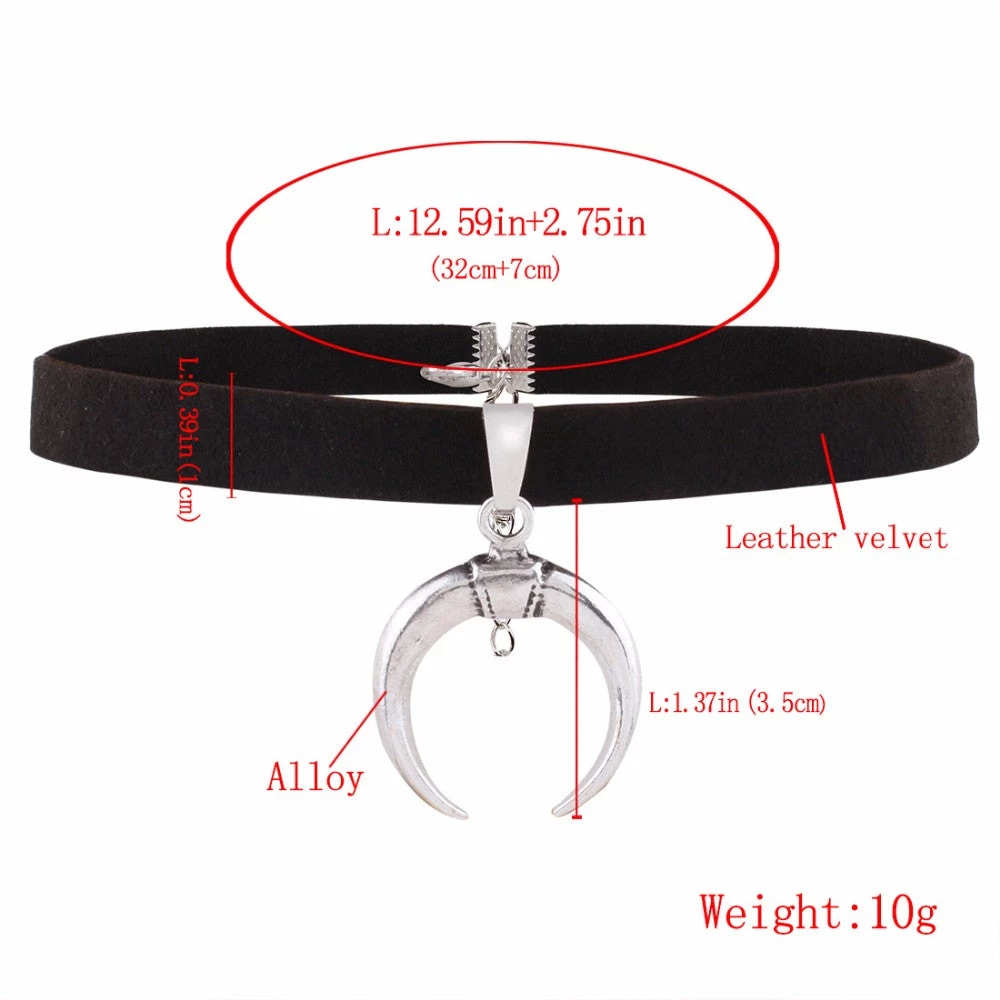 Wear this moon-shaped choker on any occasion to show off your dark taste.Â