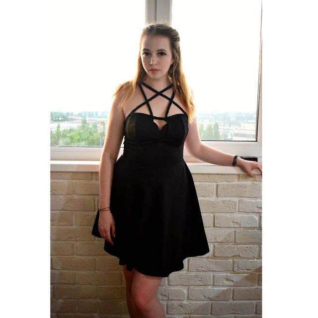 This dress is elegant and dark, just how we like it! A complete goth outfit with no effort for any occasion. Throw on one of our garters and chokers with it to achieve the darkest and sexiest possible look!