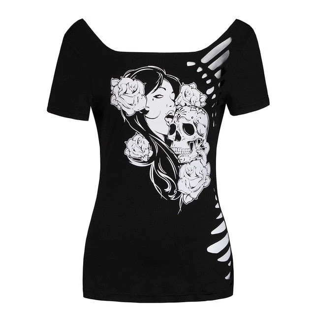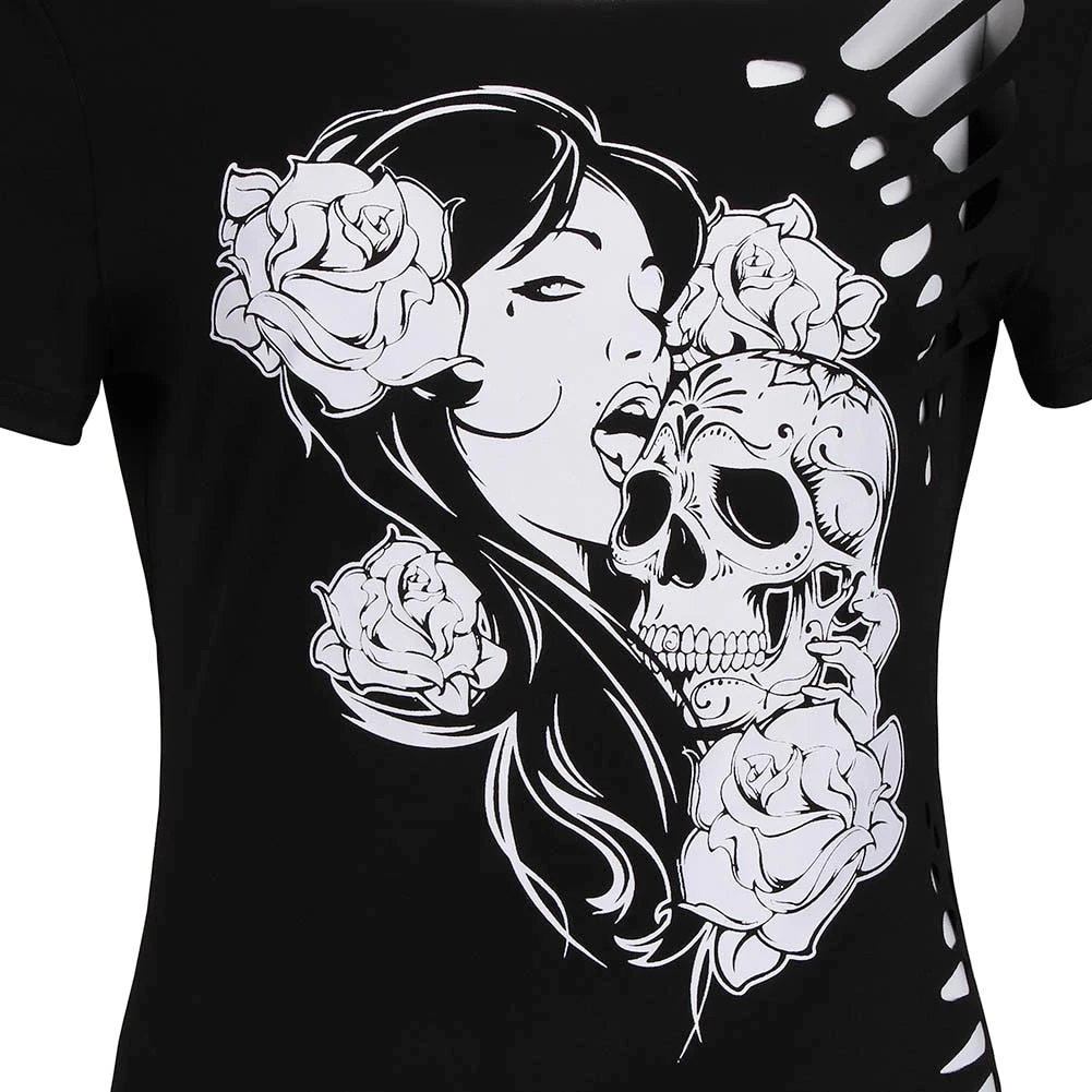 We’ve all been there…So in love that you feel like you could burst! But not in the good way. That feeling that takes you over, trapping you. The deadliest kind. When you know it’s not good for you but you just cannot control yourself. Yeah, that kind. So, we’ve transcribed this sensation onto a t-shirt! The girl licking Death with a tear on her face and the roses hugging both of them symbolize the broken dangerous love and the lust for it. The ripped parts of the tee symbolize how destructive it could be and how it tears pieces from you, leaving beautiful scars behind which make you unique.