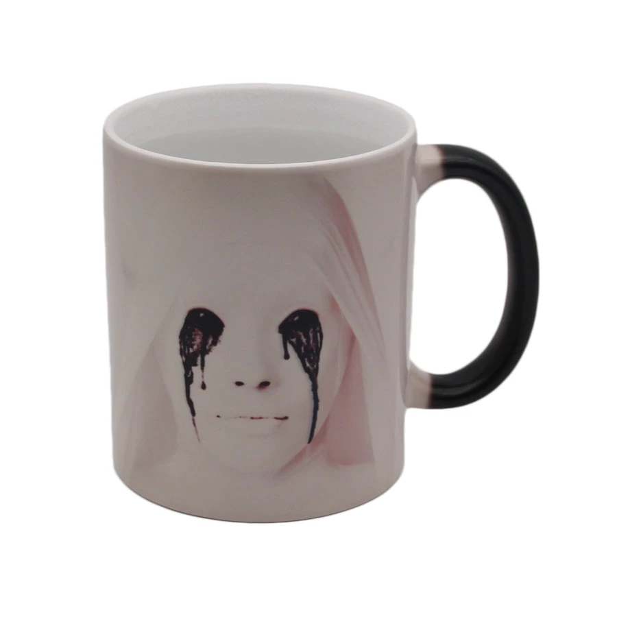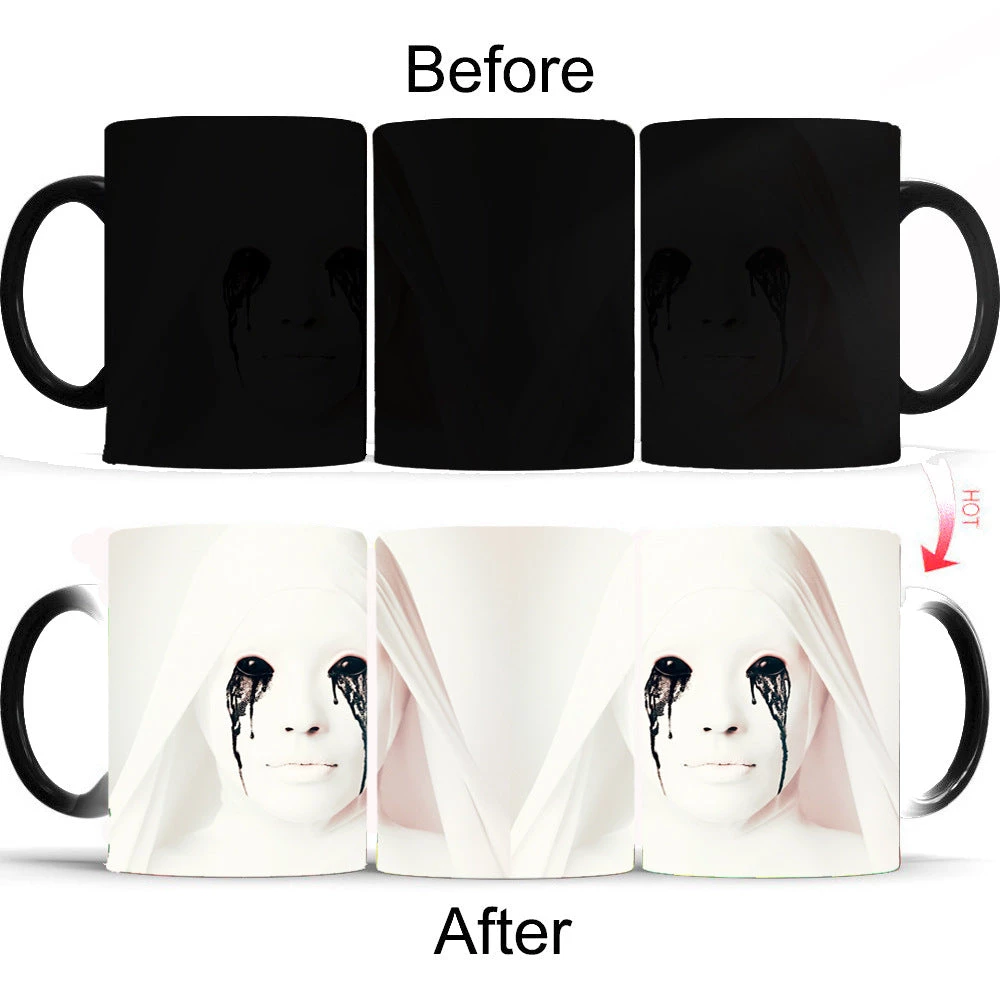 Want to enjoy coffee or tea in a suffering mug? This mug will change when heated to unveil a devastating picture.